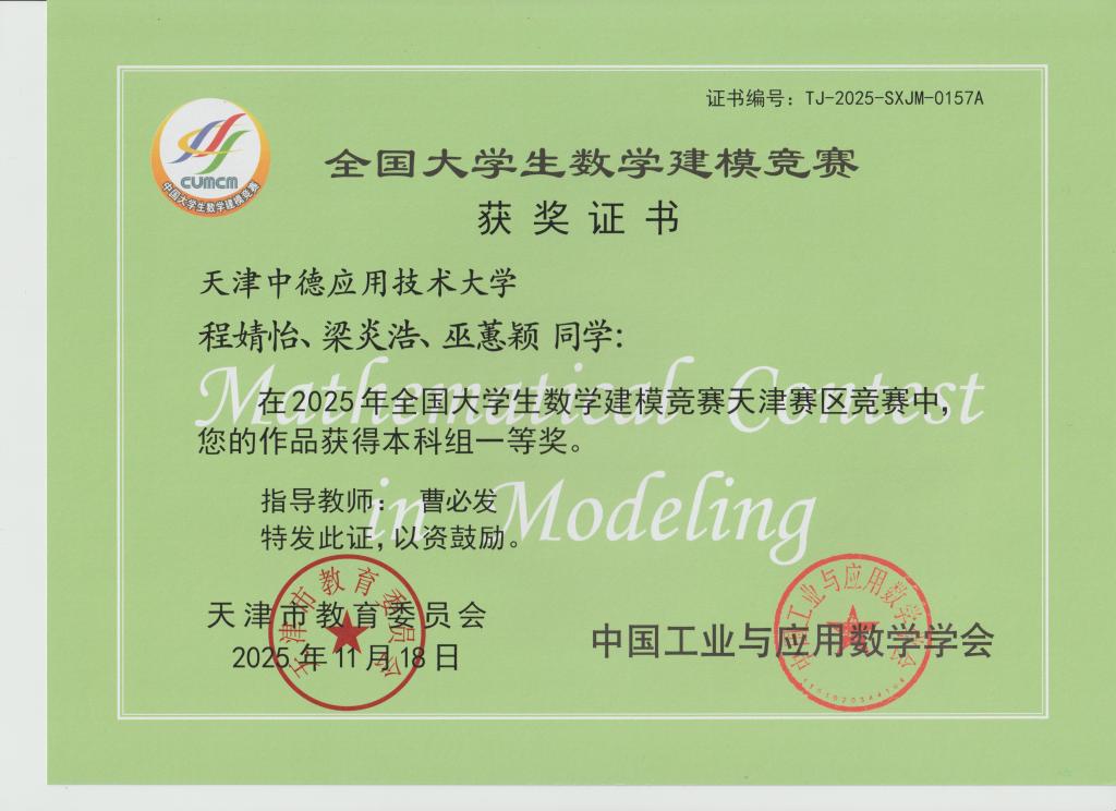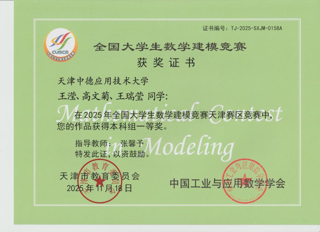 在第十七届全国大学生数学竞赛中,经过校级激烈选拔,我校共派出包括智能制造、航空航天以及经贸管理等7个学院共50名学生代表参赛。荣获获天津市二等奖4人、三等奖3人,竞赛获奖率14%,参赛规模及获奖率稳中有进。