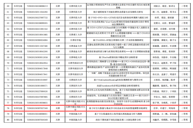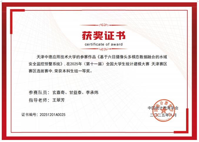 近日,2025年第十一届全国大学生统计建模大赛(天津赛区)成绩正式揭晓,我校学生首次参加该项比赛,获得省部级一等奖1项、二等奖2项、三等奖1项。